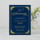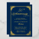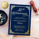 Invitación Con Relieve Metalizado Marco de Rococó Azul Marino para Aniversario de Bo