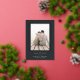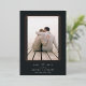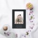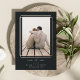 Un diseño moderno y minimalista permite guardar el diseño de fechas con acentos geométricos de moda. Su foto vertical está enmarcada por un borde geométrico doble en Relieve metalizado de oro rosa, con los detalles de su boda debajo. Un acento etéreo de guión caligráfico añade un toque de suavidad a este diseño simple y mínimo. Añada detalles adicionales a la parte posterior coordinada en color, como su sitio web boda.