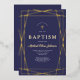 Invitación Con Relieve Metalizado Marco geométrico Marina Azul Baptismo Oro