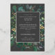 Invitación Con Relieve Metalizado Marco geométrico verde y hojas de oro plateado