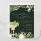 Invitación a un cóctel de navidades con letras de Relieve metalizado dorado. Margaritas y Mistletoe están escritas en caligrafía elegante y el resto de la redacción es totalmente editable. Este diseño festivo incluye cócteles de margarita, mistletoe, baubles de oro, pinares de pino, conos de pino y decoración navideña. Tiene un fondo verde oscuro que también puede editar si lo desea (pulse en el personalizar usando la herramienta de diseño).