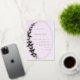 Una elegante y moderna y clásica ducha de novias con un toque de boho, con un enjambre de mariposas doradas (Relieve metalizado real) en un delicado marco dorado, con caligrafía por su nombre, sobre un fondo lila y una tipografía de lavanda. Etéreo, romántico y de diseño, gustará a la novia moderna, romántica en el corazón.