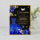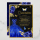 Invitación Con Relieve Metalizado Mariposa floral azul real negro Quinceanera oro