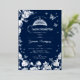 Invitación a la celebración de Quinceanera de plata azul marino. Cuenta con Relieve metalizado plateado real, tipo de letra de guión, mariposas, rosas y tiara. Perfecto para una elegante celebración de glam al estilo de la princesa. Personaliza con tus propios detalles.