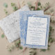 El diseño presenta un bonito efecto "marbling" de tonos azules y grises como fondo de la forma que muestra el texto. Las primeras iniciales de novia y novio se muestran elegantemente en el centro superior. El diseño se ve dominado por el aspecto de las cintas delicadas. En el reverso aparece el mismo efecto de mareo con la imagen de la cinta y el arroz. El texto es el del boda católico tradicional y es totalmente personalizable. El diseño forma parte de la suite boda "Blue and Grey Marble".
