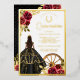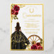 Invitación Con Relieve Metalizado Maroon Floral Black Vress Tiara Quinceanera Gold