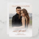 Esta tarjeta caligráfica Photo Wedding Save The Date Card presenta un diseño elegante con fotos y acabados de Relieve metalizado. Su diseño sencillo pero sofisticado es perfecto para parejas que aprecian un estilo sobrio. Con materiales de alta calidad y atención a los detalles, esta tarjeta hará que sus huéspedes se sientan impresionados.