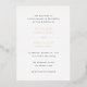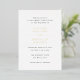 Elegante invitación al Relieve metalizado de bodas con un diseño sencillo y tradicional con los detalles del evento en fuentes serif.