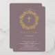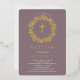 Hermosas invitaciones de bautismo de Relieve metalizado dorado con una delicada corona floral y cruz sobre un fondo malva. Invierta nuestra invitación para ver una coordinación de nuevo para un toque especial. Visite nuestra tienda para ver toda nuestra colección religiosa.