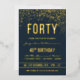 Invitación Con Relieve Metalizado Medianoche | Confetti de oro 40.º Fiesta de cumple