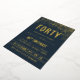 Medianoche | Confetti de oro 40 invitaciones a la fiesta de Relieve metalizado de cumpleaños. Esta invitación formal, elegante, moderna y de moda a la fiesta de cuarenta años es apta para hombres o mujeres. Comprende líneas limpias doradas, un guión gótico elegante de funda superior y un sofisticado texto de Relieve metalizado dorado sobre un fondo azul medianoche con duchas de confeti dorado brillante, brillantes y tiras fiestas.