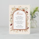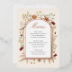 Flores y hierbas de inspiración boho rodean un borde de lámina real y espacio para incluir todos los detalles de su menú de boda. Su elección de lámina de oro rosa, oro o plata para el borde del arco. Cambie fácilmente los colores de fondo para diferentes estaciones o temas.