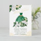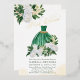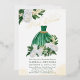 Invitación a la Quinceañera verde esmeralda con decoraciones florales de flores y vegetación de color verde y oro princesa y acuarela. Mi Quince está escrito en caligrafía rápída de Relieve metalizado dorado y el resto en la elegante tipografía serif. Por favor, vea mi colección Emerald Greenery & White Peony para ver los elementos coincidentes o, envíeme un mensaje para crear las plantillas que necesita.