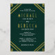 Invitación Con Relieve Metalizado Mínimo Geométrico Art Deco Boda Esmeralda Gold