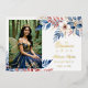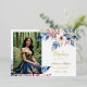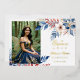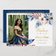 Delicate Blue & Red Shades Floral Botanical Bouquets Photo Quinceañera Metallic Foil Invitation Card.