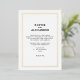 Moda y mínima invitación de bodas francesas, de inspiración parisina, monocromáticas en blanco y negro con borde de Relieve metalizado dorado. Personalizar con sus nombres y la información de su boda en una moda mínima sans serif. Diseñado para coincidir con nuestra Moda Minimal French Black & White Boda Collection.