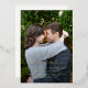 Invitación nupcial moderna con los detalles de tu evento sobre tu foto vertical favorita con las palabras "la celebración boda de" en un guión elegante. La parte trasera tiene una imagen adicional.