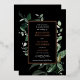 Este magnífico diseño de invitación a la boda presenta un magnífico ilustracion botánico verde y un fondo negro. El marco, sus nombres y la fecha de boda están todos en Relieve metalizado real presionado. Este elegante diseño es una opción fabulosa para muchos estilos de eventos, desde clásicos hasta boho. Puede personalizar de este diseño aún más agregando otra foto o texto adicional al reverso. Relieve metalizado disponible en oro, plata o oro rosa y absolutamente brillos. Seleccione las invitaciones reales de boda de Relieve metalizado para añadir ese factor de wow!!
