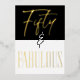 Invitación Con Relieve Metalizado Modern Black White Fifty & Fabulous Birthday
