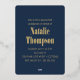Anuncie su logro académico con estilo con nuestra invitación al Relieve metalizado de la Marina del Partido de la Graduación 2024. Esta elegante invitación combina el diseño contemporáneo con lujosos acentos de Relieve metalizado azul marino y oro, creando una invitación sofisticada e inolvidable para su celebración. Con espacio para tu foto de graduación y texto de personalizable, esta invitación te permite crear una invitación personalizada que captura perfectamente la esencia de tu logro. Ideal para graduados de secundaria o universitarios, esta invitación marca el tono de un fiesta moderno y elegante. Ya sea que esté organizando una reunión íntima o una gran aventura, nuestra invitación asegura que su evento será uno a recordar. Con su diseño minimalista y audaz, esta invitación impresionará a los clientes y dejará una impresión duradera. Prepárese para celebrar su éxito con estilo con nuestra invitación al Relieve metalizado de la Marina del Partido de la Graduación 2024.