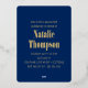 Anuncie su celebración de graduación con estilo con nuestra invitación al Relieve metalizado azul de la fiesta de graduación 2024 de Modern Bold Typography. Esta sofisticada invitación combina el diseño contemporáneo con lujosos acentos de Relieve metalizado de oro y azul real, creando una invitación sorprendente e inolvidable para su evento. Con espacio para tu foto de graduación y texto de personalizable, esta invitación te permite crear una invitación personalizada que captura perfectamente la esencia de tu logro. Ideal para graduados de secundaria o universitarios, esta invitación marca el tono de un fiesta moderno y elegante. Ya sea que esté organizando una reunión íntima o una gran aventura, nuestra invitación asegura que su evento será uno a recordar. Con su diseño minimalista y audaz, esta invitación impresionará a los clientes y dejará una impresión duradera. Prepárese para celebrar su éxito con estilo con nuestra invitación al Relieve metalizado azul de la fiesta de graduación 2024 de Modern Bold Typography.