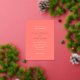 This design is part of a bold and vibrant coral wedding invitation suite featuring elegant typography and a clean, modern layout. The rich coral hue creates a warm, eye-catching statement while maintaining a refined and timeless feel. Perfect for couples seeking a fresh, contemporary design with a lively yet sophisticated color palette, this pairs beautifully with soft neutrals or complementary coastal tones.
