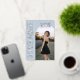 This dusty blue gray photo graduation announcement blends timeless serif typography with a clean, modern layout for a calm and sophisticated look. Soft white lettering provides crisp contrast against the muted blue-gray background, while rose gold foil accents highlight the graduate’s name, class year, and school. Fully customizable, the front allows you to personalize all details and upload your own photo. The coordinating back features a matching blue-gray background with a four-photo collage template, perfect for additional senior portraits. A refined graduation announcement designed for those who love cool-toned neutrals, classic typography, and modern editorial style. © Kimbellished, LLC