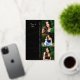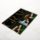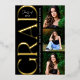 Make a bold statement with this striking graduation party invitation featuring oversized "GRAD" text in gold foil on a dramatic black background, paired with a multi-photo collage layout. The back presents "Grad Party" event details in elegant black serif and script typography on white. All text is fully customizable, including the graduate's name, school, class year, and event details.