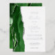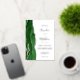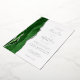 The left-hand edge of this elegant modern wedding invitation features a hunter green watercolor agate border trimmed with faux silver glitter. The customizable text combines handwriting, copperplate and italic fonts in real silver foil on a white background. The reverse side features a matching green and silver agate design.