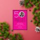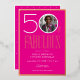 Invitación Con Relieve Metalizado Modern Minimal Pink Fifty Fabulous Photo Birthday