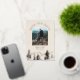 Celebrate your upcoming mountain wedding with these foil-pressed save the date invitations, featuring a mountain range design pressed in gold, silver, or rose gold foil on a cream white beige background. The arch-shaped photo template on a dark green background allows you to personalize your card with your favorite photo and wedding details. Perfect for mountain weddings, outdoor celebrations, fall weddings and couples seeking modern, elegant wedding stationery with a luxurious metallic finish.