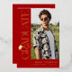 Invitación Con Relieve Metalizado Modern Red Tassel 3 Photo Graduation