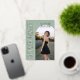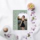 This sage green photo graduation announcement pairs classic serif typography with a clean, modern layout for a refined, editorial look. Soft ivory lettering and rose gold foil accents highlight the graduate’s name, class year, and school, while the design keeps the focus on the main photo. Fully customizable, this template allows you to personalize all text details and upload your own image on the front. The coordinating back features a matching sage background with space for a four-photo collage, ideal for sharing additional senior portraits. A timeless yet contemporary graduation announcement designed for those who love neutral tones, elevated design, and understated luxury. © Kimbellished, LLC