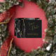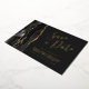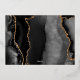 Esta elegante tarjeta moderna para salvar la fecha presenta un borde de ágata de acuarela negra recortado con brillo dorado falso. El texto personalizable combina escritura a mano con lámina de oro real, fuentes copperplate e itálicas sobre un fondo negro apagado. El reverso presenta un diseño de ágata negra y dorada a juego.