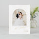 Minimalist wedding invitation features modern script and chic arch frame in real gold foil, with couple's photo, elegant and simple, great for modern classy wedding.