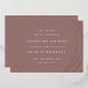 Announce your wedding date and location in chic modern style with these sleek save the date cards featuring abstract yet geometric detailing on an earth toned dark mauve background. Front features your wedding details in minimalist modern lettering, encircled by irregular sphere shapes in elegant rose gold. Add additional details, like your wedding website, to the back.