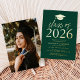 Invite a los huéspedes a celebrar el grado con nuestra moderna clase de invitados a la fiesta de graduación 2025. Las invitaciones presentan un tapón de graduación en la parte superior con la "Clase de 2025" mostrada en letras de Relieve metalizado dorado con un fondo verde oscuro. Personalice las invitaciones agregando el nombre del graduado, la escuela y los detalles de la fiesta de graduación. La fiesta de graduación del Relieve metalizado de oro invita a revertir para mostrar la foto del graduado.