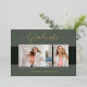 Hermosas tarjetas de invitación para graduación fotográfica. Con un texto moderno con un elegante guión caligráfico en su elección de Relieve metalizado dorado, plateado o rosa. Tus fotos están muy bordeadas con un guarnecido gris claro para ese "Pop" extra. El diseño se complementa con tonos de verde azulado. La parte posterior de la tarjeta ofrece un espacio de texto de invitación personalizado para ese graduado especial. Para ver más artículos como este, visita mi tienda aquí en "www.Zazzle.com/LakeViewCardCo". ¡Gracias