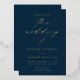 Invitación minimalista y moderna a la boda con los detalles de su boda con "el boda de" en un elegante guión de caligrafía de Relieve metalizado dorado. El fondo marino puede cambiarse a un color de su elección. Diseñado para coordinar con nuestra colección de bodas Modern Elegance.