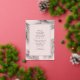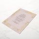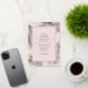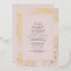 Presenta un diseño moderno con hojas de palma de Relieve metalizado dorado reales tropicales sobre un suave fondo rosa - rubor combinado con una elegante tipografía caligráfica, para un aspecto de moda. Elija entre oro, rosa o Relieve metalizado plateado.