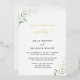 Sencilla invitación a la recepción de bodas con tipografía elegante con "Feliz eterno después del Fiesta" en Relieve metalizado de oro real, junto con una pizca de vegetación eucalipto en la esquina superior izquierda y en la esquina inferior derecha. La parte trasera está cubierta por una sombra de color verde sabio. Esta moderna Invitación a la Recepción de Bodas es genial para una pareja que ya está casada y quiere celebrar con amigos y familia después de que se fugaron.