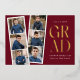 Una fiesta de graduación a la moda invita a presentar una tira de películas con fotos de 6 cuadrados del graduado. El "Grad" se exhibe con letras modernas de Relieve metalizado dorado de fondo burdeos. Personalice el frente de la invitación de la fiesta de graduación con fotos múltiples agregando el nombre del graduado, el nombre de la escuela y el año de graduación. La invitación se invierte para mostrar los detalles de tu fiesta de graduación con letras blancas con un fondo borgoñoso. La invitación a la fiesta de graduación de Relieve metalizado es perfecta para los graduados de secundaria y universitarios.