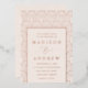 Elegante invitación a una boda artística deco con un toque de arco de Relieve metalizado dorado subió con un fondo de color crema. Personalice las invitaciones de boda modernas con sus nombres y detalles bodas en letras de Relieve metalizado de oro rosa.