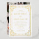 Invitaciones a bodas de arte moderno con detalles bodas enmarcadas por un marco de arte deco de Relieve metalizado dorado. Las impresionantes invitaciones de Relieve metalizado oro Art Deco invitan a la boda para mostrar tu foto vertical de sangre completa. Diseñado para coordinar con nuestra colección de bodas Art Deco Moderno.