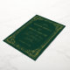 Invitaciones de boda de arte moderno con detalles de tu boda enmarcadas por un marco de arte deco de Relieve metalizado dorado con un fondo verde. Las impresionantes invitaciones a la boda de Relieve metalizado verde y dorado invitan al reverso para mostrar tu foto vertical de sangre completa. Diseñado para coordinar con nuestra colección de bodas Art Deco Moderno.