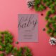 Invitación Con Relieve Metalizado Moderno BABY SHOWER Rosa todo en 1 RELIEVE METALI