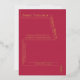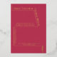 Presenta un toque de lujo a tu celebración boda con nuestra moderna invitación a la boda de Relieve metalizado, con elegante caligrafía de oro en un atrevido fondo magenta. Esta invitación rebosa elegancia y glamour, lo que lo convierte en la elección perfecta para su día especial. La hermosa caligrafía de Relieve metalizado dorado se combina con un rico fondo de magenta, creando un impresionante contraste que impresionará a los clientes. El material de cartón de alta calidad y su elección de tamaño y tipo de papel le aseguran un toque lujoso y personalizado. Ya sea que busques un toque de elegancia o una declaración, esta invitación a la boda seguramente causará una impresión duradera. Añada un toque de glamour a la celebración de su boda con esta moderna invitación al Relieve metalizado.
