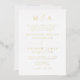 Invitación minimalista y moderna a la boda con sus iniciales de monograma y los detalles de boda mostrados en letras de Relieve metalizado dorado con acentos caligráficos. El fondo blanco puede cambiarse a un color de su elección. La invitación a la boda del Relieve metalizado se invierte para mostrar la foto de compromiso vertical. Diseñado para coordinar con nuestra colección de bodas Modern Elegance.