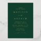 Invitación minimalista y moderna a la boda con sus nombres y detalles bodas en letras de Relieve metalizado dorado con acentos caligráficos. El fondo verde puede cambiarse a un color de su elección. Diseñado para coordinar con nuestra colección de bodas Modern Elegance.