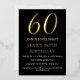 Moderno, código QR, Relieve metalizado negro y dorado, elegantes invitaciones de cumpleaños número 60. Puedes personalizarlo con tus propios detalles.